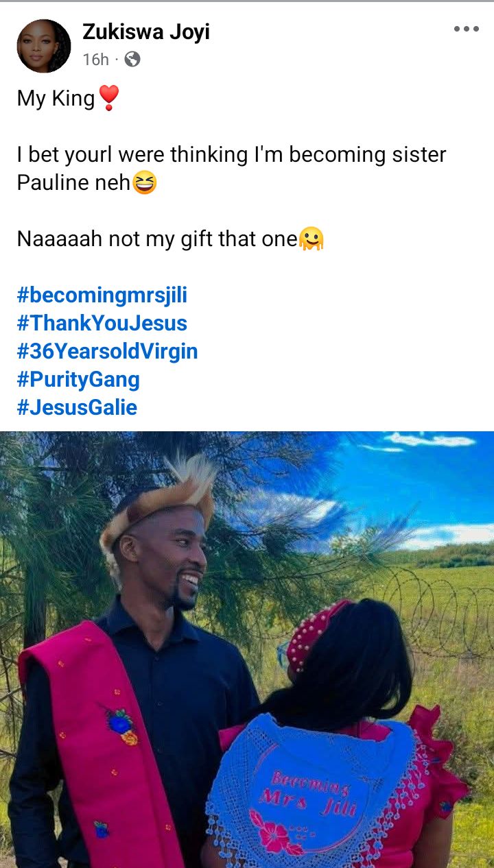 “See what the Lord has done. What we waited for has come to pass. #BecomingMrsJili #NewChapter #36Yearoldvirgin #Jesusgalie,” she captioned the post.